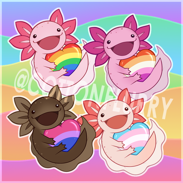 Axolotl Pride Matte Vinyl Stickers - Waterproof - LGBT+ Lesbian Gay Bisexual Transgender